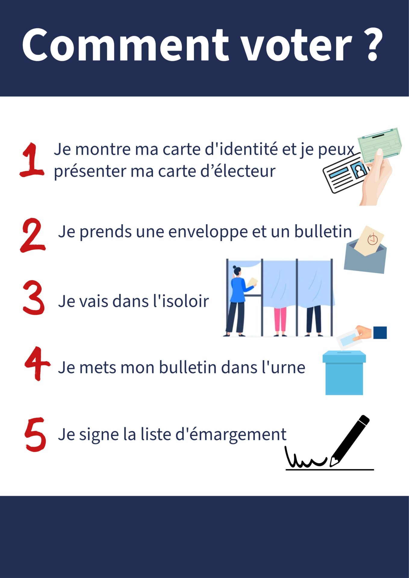👉 Le ministère de l’Intérieur rappelle que l’accessibilité des bureaux et techniques de vote est une obligation légale (article L.62-2 du code électoral). Voir les recommandations officielles.