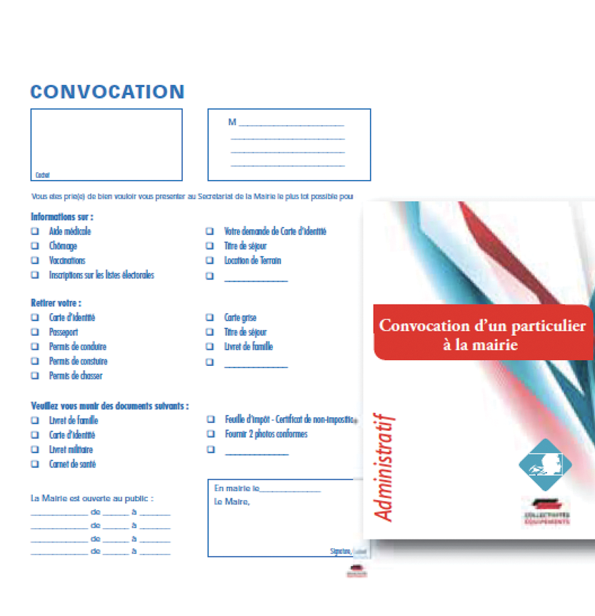 Bloc de convocations – Convocation d’un particulier à la mairie