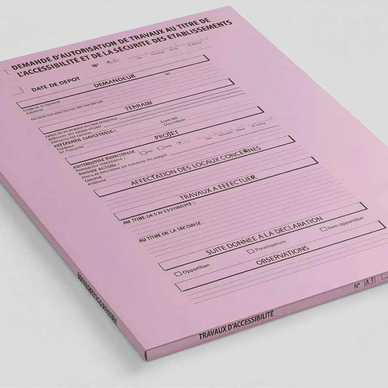 La chemise de Travaux d’accessibilité et sécurité facilite le classement et l’archivage des demandes d’urbanisme. Son code couleur rose permet une identification rapide, évitant toute perte de temps. Robuste et bien conçue, elle garantit une conservation efficace des documents.