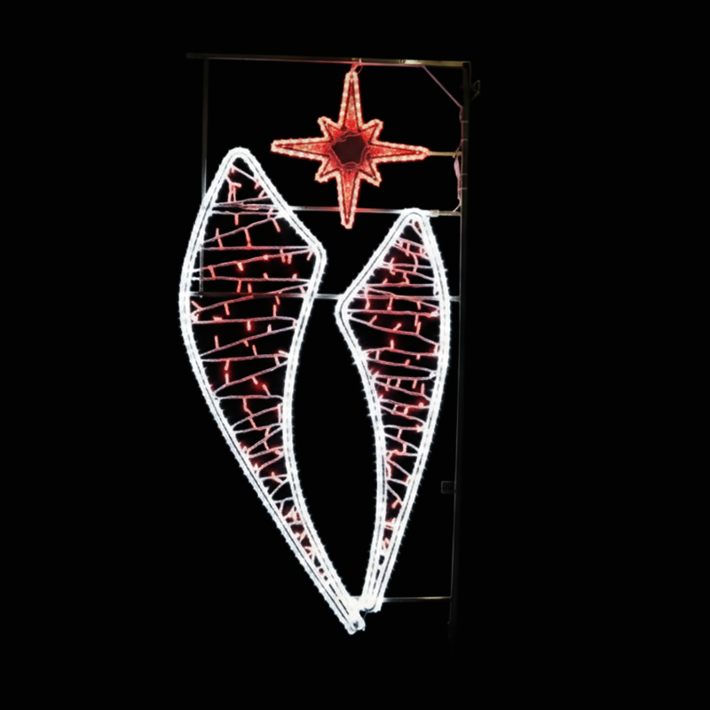 Décor lumineux Évaséclat : LED rouges et blanches, effet irisé de jour, installation facile sur poteau. Fabrication française, garantie 2 ans.