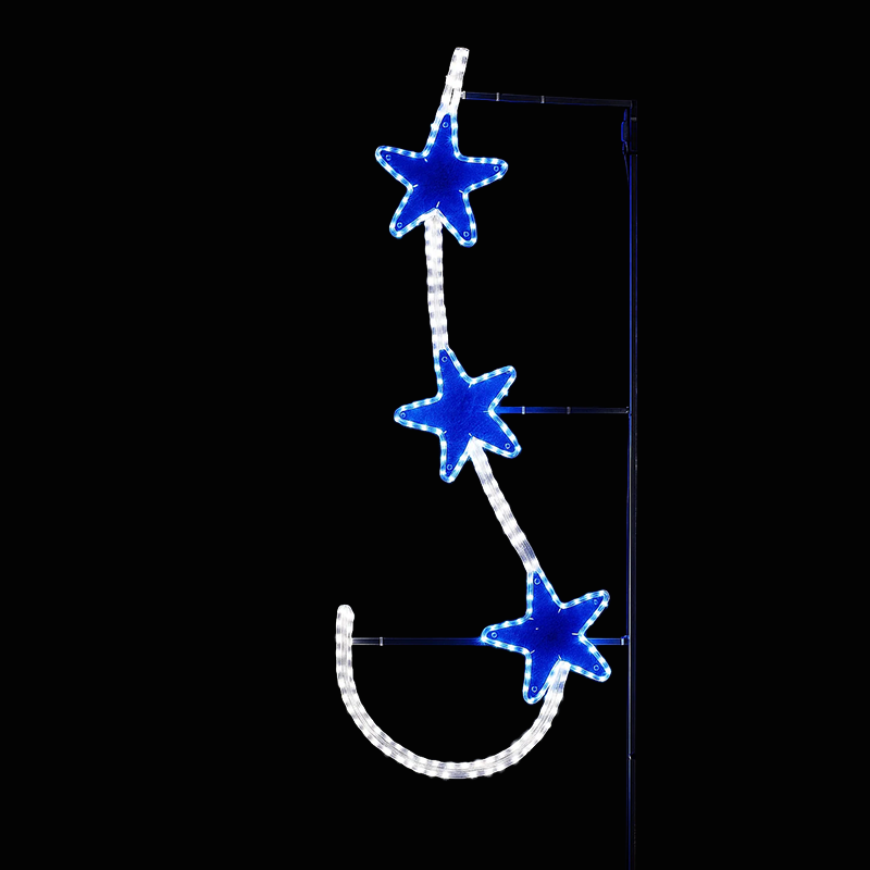 Le décor Fugue pour poteau illumine vos espaces avec sa guirlande LED bleue et son cordon lumineux fixe LED blanc et bleu. Son panneau irisé crée un effet éclatant en journée, offrant une mise en lumière harmonieuse et moderne.