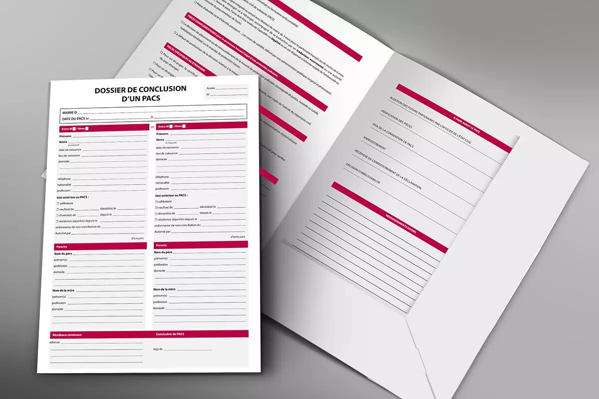 Le dossier du PACS s’adresse aux responsables de l’Etat-Civil pour leur apporter confort et efficacité dans l’établissement de la convention de Pacte de Solidarité Civil.