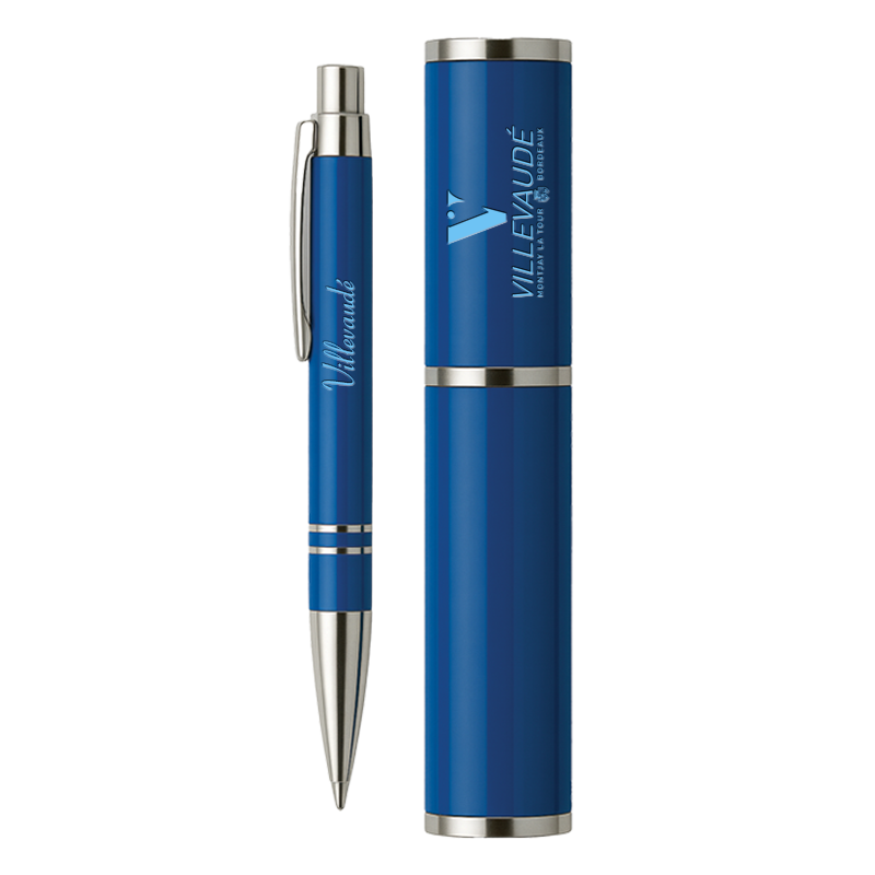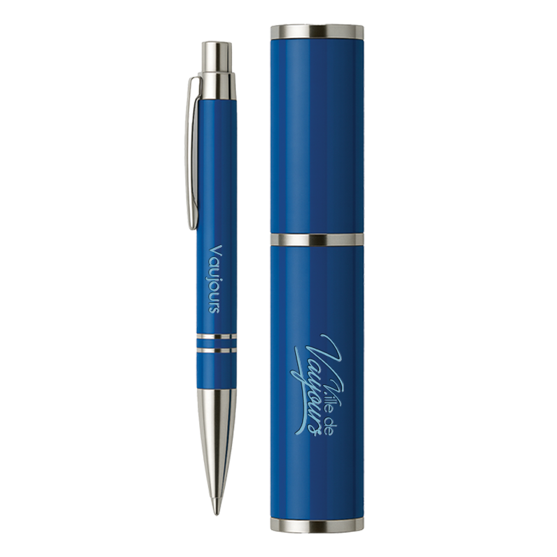 L’écrin et le stylo peuvent être personnalisés selon vos souhaits : logo, blason, nom de la commune ou message court (ex. Parrainage civil, CME, CMJ, Bienvenue, Remerciement, etc.).