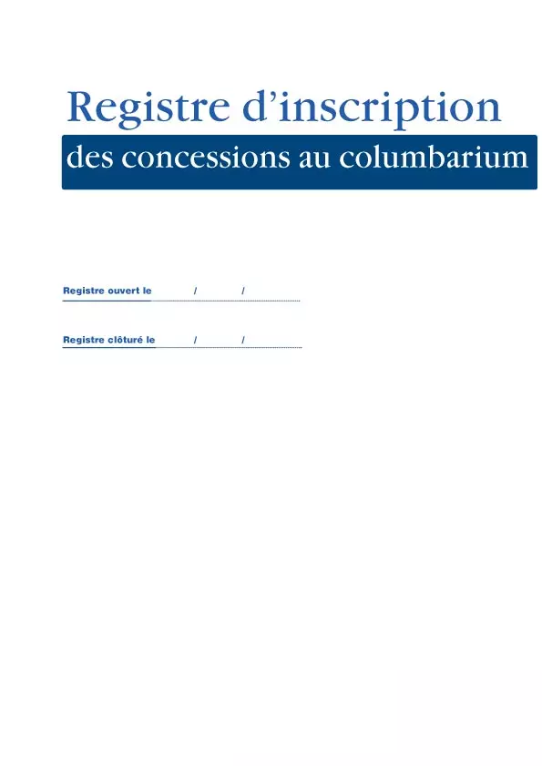 Le registre d’inscription des concessions au columbarium est un document officiel destiné au service de l’État civil.