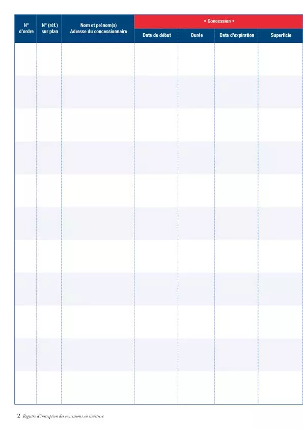 Conçu pour centraliser toutes les informations relatives aux concessions funéraires, il permet de consigner de manière claire et durable :