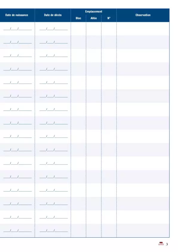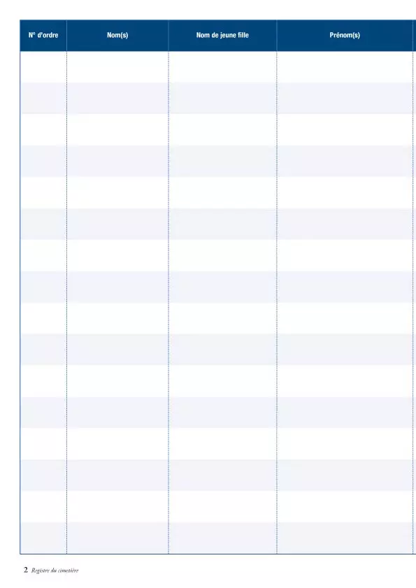 Outil de référence pour les mairies et services funéraires, ce registre garantit une traçabilité claire et durable de toutes les opérations liées aux sépultures et emplacements.
